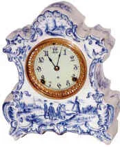 Ansonia Clock Co. Blue Delft porcelain case, "Saranac" model, ca 1900.