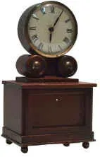 The Burroughs Company made miniatures of lots of wood clocks. This clock is a miniature Wagon Spring. Wood paneled case, brass but-tons and brass rin...