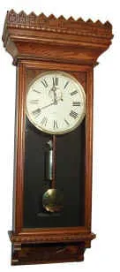 Refinished and restored oak case is 50 inches high and 20 inches wide. Polished old dial pan, replaced paper dial signed Gilbert. Old pendulum, beat ...
