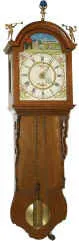 Thirty hour time, strike, and alarm movement is complete, running, and striking on a large iron bell on top of the movement. The movement, dial, chai...