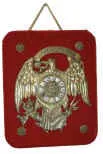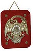 Large-heavy bronze eagle that we so often see on various patriotic items, and embossed at the top is "E. Pluribus Unum". Porcelain cartouche numerals...