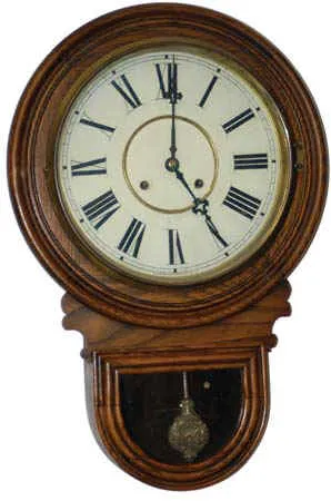 Waterbury Clock Co. wall clock, the "Andes", ca 1910, made with a calendar and no calendar, always in oak.