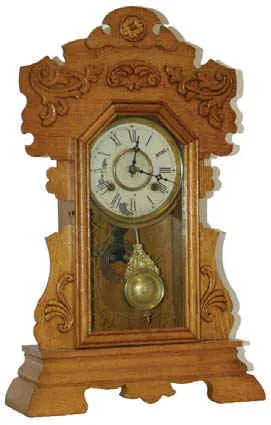 New Haven Clock Co. oak kitchen clock, one of their "Mersey Line", ca 1907.