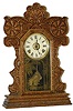 Nice refinished oak case is 22.5 inches high, pressed designs abound on the door, base and main body of the case. Paper dial is a correct replacement ...