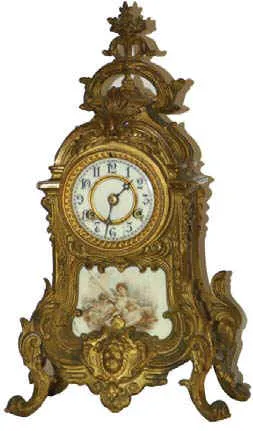 Waterbury Clock Co. metal case mantle clocks, the "Nantes", ca 1915.