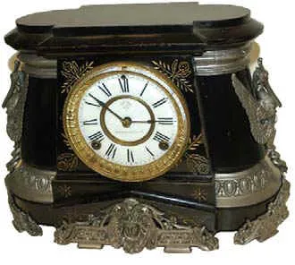 Frequently seen with any number of different statues, Ansonia generally pictured it without one. This is a rather large clock, 15 inches wide, 10.75 ...