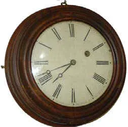 Ca 1845-1853. The walnut case is 13.5 inches wide, wood dial is almost 9.5 inch across. Bowed wood dial is excellent, bowed glass with a good part of...