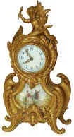 First it is 12.5 inches high, has a 3 inch porcelain dial-signed, cast sash, and a wonderful decorated porcelain panel below the clock, depicting a m...