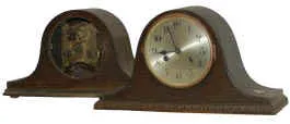 1. Has no dial or bezel, case very dirty. 8 day movement is signed "Norland, Made In England", and it also is very dirty. Standing gong, no pend. Oak...