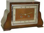 13 inches wide oak? Case, large bowed glass, silver dial on the wood case. You will need to do some light touch up to the case where scuffed or chipp...