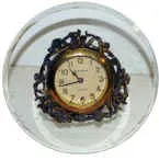 New Haven novelty clock, small in a 6 inch round beveled glass.
