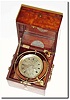 The movement, serial number 1710, with gold hands, compensating balance, helical hairspring and interesting detent, in a mahogany box with double lids and handles intact. Although this clock runs fine, the dial has some oxidation spots and it could stand cleaning. Also gimbal has a bind in it; box with different number, 1220. Height 7.5'