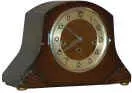 English mantle clock, plays Westminster chimes on 5 rods each quarter hour, strikes the hours.