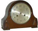 Perivale British Clock Co., small shelf clock, 8 day balance wheel movement, striking a standing gong.