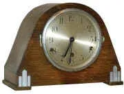 Full label on the door identifies it as a Kenilworth clock. The nice silver dial just says, "Foreign". Bowed glass in the silver bezel. Oak case is 1...