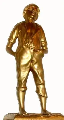 C.1909, Seth Thomas Clock Co. "Whistling Boy", 8-day time/strike figural mantel clock.