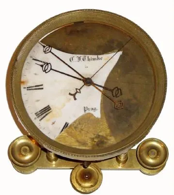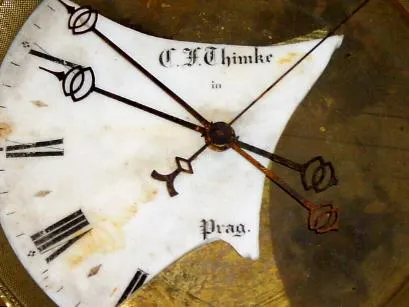 Movement only: C.1840, C. F. Thimke, Prag, weight driven laboratory regulator movement with center seconds and many quality refinements, now with broken dial.