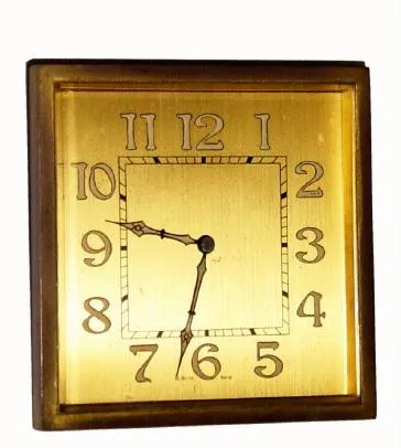 C.1950 Swiss, gilt brass case, 8-day jeweled movement travel or desk timepiece.