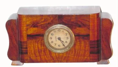 Condition: Nice little walnut veneered art deco style case with an original finish. Original dial has darkened from age. We could not determine the co...