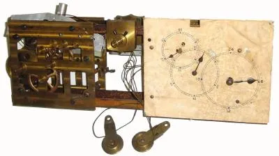 Movement only: C.1920, 2-weight mater movement of some type, with a dial that indicates separate seconds, minutes and hours.