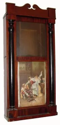 Condition: Mahogany veneered case is in good condition with some veneer loss. Splat is not original. Top glass is cracked and lower is a replacement. ...