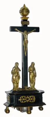 C.1620, Augsburg, Striking Crucifix Clock, the time read on the annular globe at the top of the cross.
