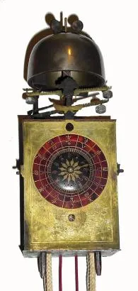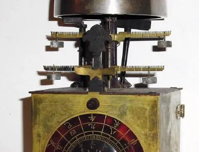 Mid 20th century, copy of 19th Century Japanese Lantern Clock, dual foliot, 3-wt, striking, with alarm.