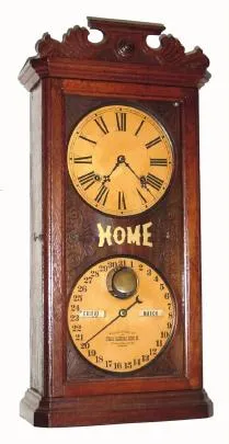 C.1880, Ithaca HOME double dial calendar clock in walnut.