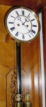 C.1880, Austrian, 2-Weight Vienna Regulator, in a walnut case with carved columns and inlaid backboard.