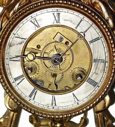 C.1890, French, Swinging Doll clock, in a gilt spelter case, 8-day striking.