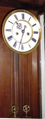 Condition: this clock is clean and running. The top is from another piece of furniture, cut down to fit. Pulleys are new replacements. The case has so...
