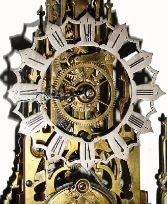 C.1870, W. F. Evans (signed), Sir Walter Scott Memorial skeleton timepiece, less dome.