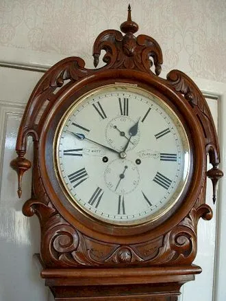 A particularly attractive domestic regulator in a walnut case dating from circa 1860 The dial, which has been repainted, is signed for J. Watt of Glasgow, who is not listed as a maker and may have been the retailer.