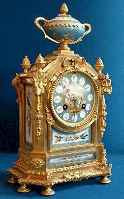 The case is bronze which has been hand engraved and finished. The porcelain panels are hand painted Paris porcelain in the Sevres style. The movement,...