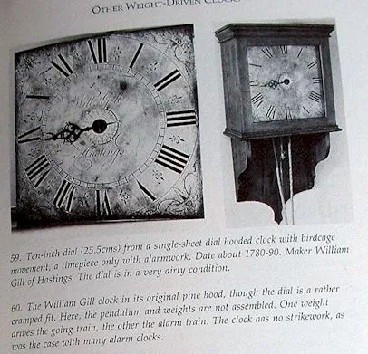 The one-piece brass dial is well engraved and signed for the maker, William Gill of Hastings, who is recorded by Baillie as working circa 1795. The cl...