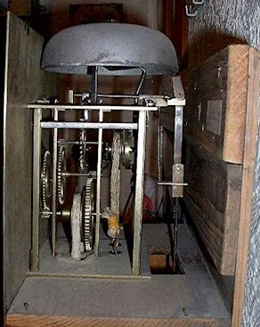 A late eighteenth century single-handed hooded wall timepiece with alarm.