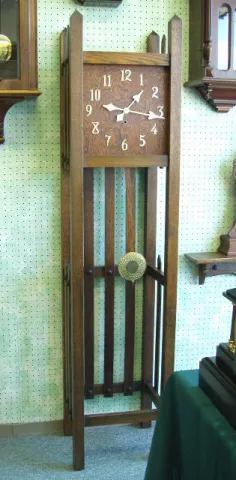 Mission Oak Floor Timepiece By The National Clock Co., In A Picket Fence Style.