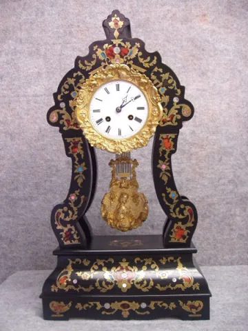 Inlaid Rococo Style With Brass, M.o.p., Tortoise And Enamel. White Enamel Dial With Roman Numerals. Unmarked French 8 Day Movement With Hour And 1/2 H...
