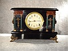 The Case Is Black Enameled Wood With Red Marbelized Mouldings, Green Columns And Bronze Finished Metal Trimmings. The Dial Is Celluloid With Arabic Nu...