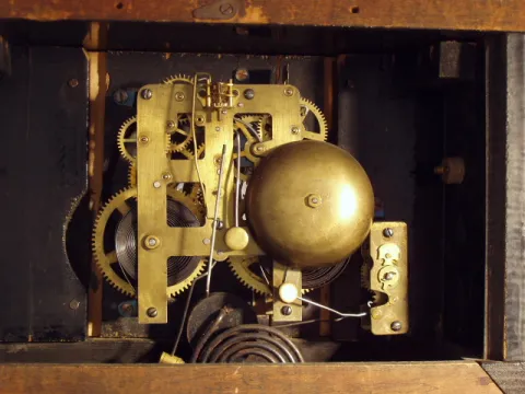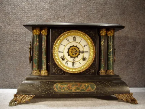 Waterbury Wood Case Black Mantel "Dunraven" Clock. Circa 1909.