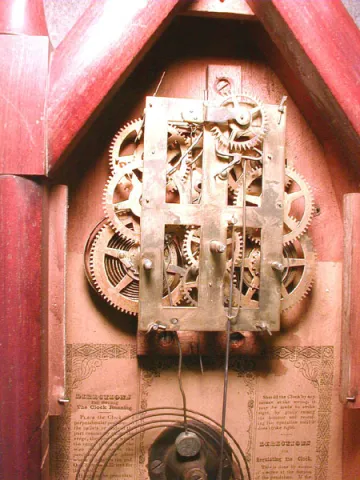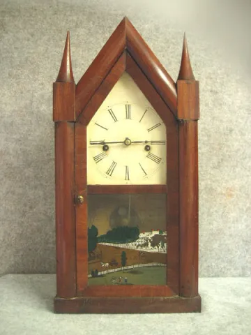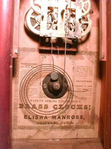 30-Hour Steeple Clock By Elisha Manross, Bristol, Ct. The Movement Has It's Original Brass Mainsprings And A Center Countwheel. Circa 1850-1856.