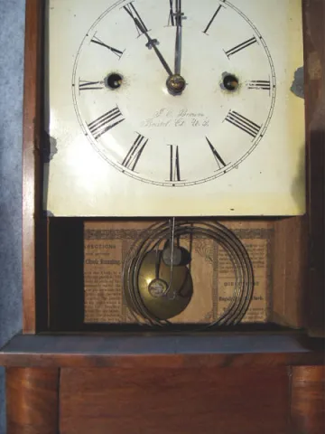 Cottage Clock Made By J.C. Brown In Bristol Ct, US. The Original Painted Dial Is Signed J.C. Brown, Bristol, Ct, US.