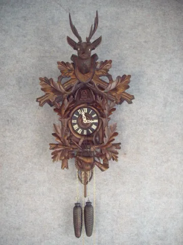 There Is A Hunting Pouch Below The Dial And A Horn Around The Dial. The Crown Is A Replacement And Has A Deer's Head. This Clock Has An Hour And 1/2 H...