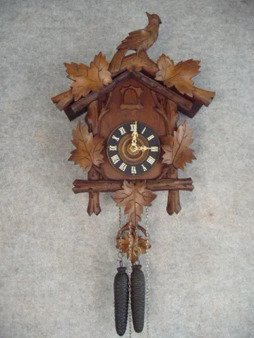 30 Hour Weight Driven German Cuckoo Clock In A Carved Grape Leaf And Grape Motif With A Diving Bird On The Center Of The Crown. Circa 1900-1910.