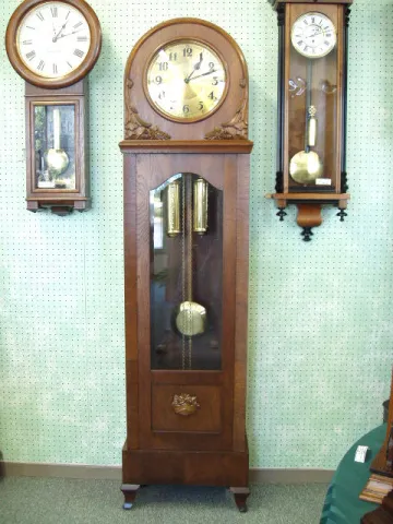 German Round Top Floor Clock In An Oak Veneered Case By Kieninger. Circa 1910-1920.