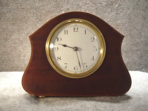 French Boudoir Clock In A Mahogany Case With Satin Wood And Ebony Banding And Sits On Brass Feet. Circa 1920.