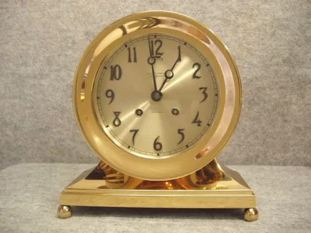 6" Chelsea Brass Base With Ball Feet, Ship's Striking Mantel Clock, Serial No. 107209, Circa 1916-1917.