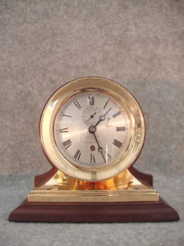 Chelsea Clock Co. 4 1/2" Red Brass Case And Base Attached To A Mahogany Stand, Serial No. 37977, Circa 1907.