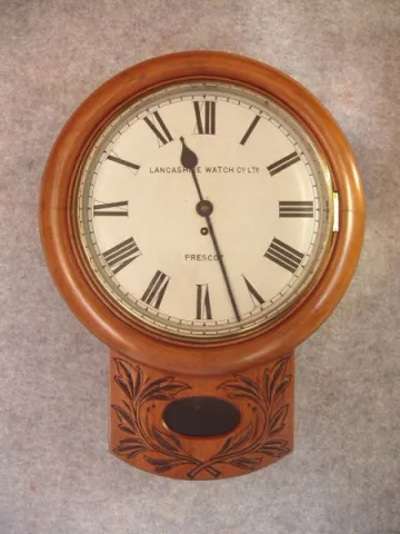 The Case Is Mahogany With Carving Around The Lower Glass. The Painted Roman Dial Is Signed "Lanshire Watch Co., Ltd. Prescot". H. - 23" X W. - 17" X D...