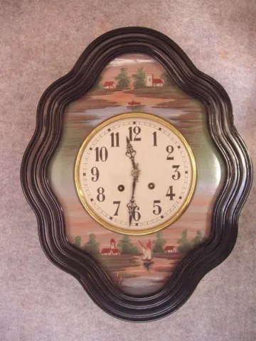 French Picture Frame Clock, Circa 1900-1930, With Painted Scene On The Front.